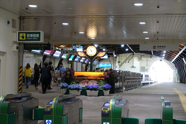 改札のところでは