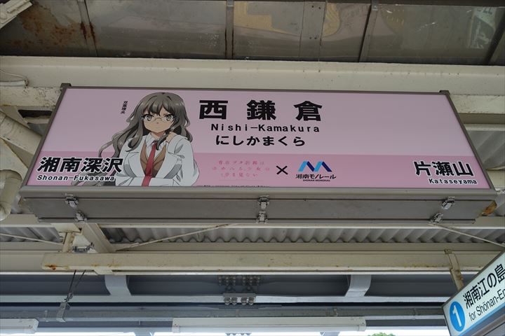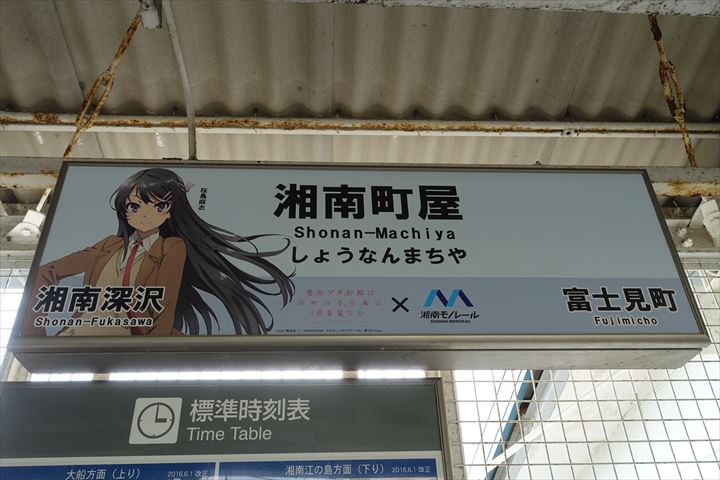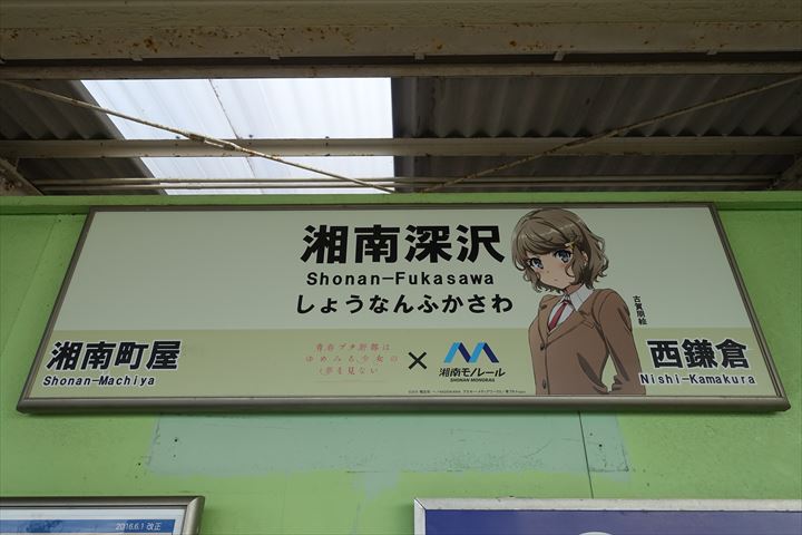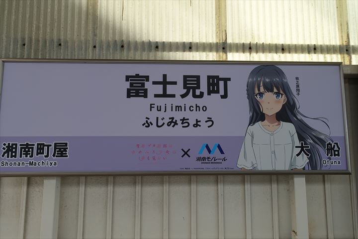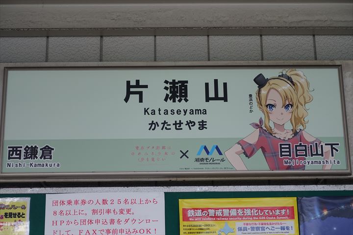 各駅毎に青ブタキャラクターの駅名の看板が設置されているというので